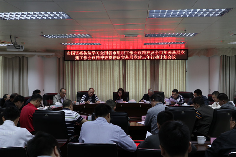 2018年11月02日上午,市国资委召开传达学习全国、省、市组织工作会议精神及市加强基层党建工作会议精神暨贯彻落实基层党建三年行动计划会议,市国资委机关全体人员,所属监管企业主要负责人、支部书记和支部副书记,以及所属各监管企业的党务工作者参加了此次会议