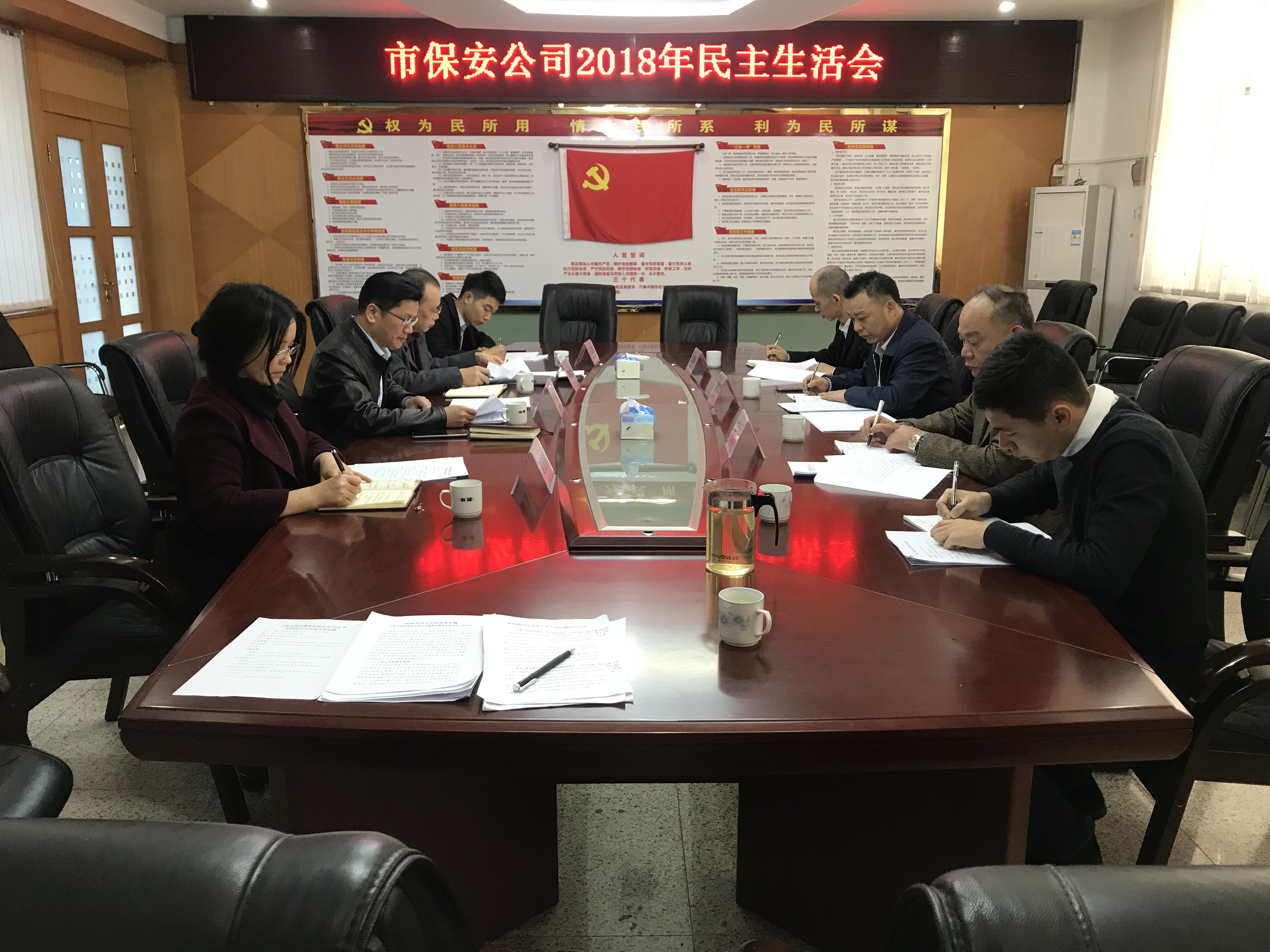 节前,市国资委党委书记、主任陈晓周到所属监管企业市保安公司指导2018年度民主生活会。市国资委调研员阮伯铭以及办公室负责人等一同出席了会议。