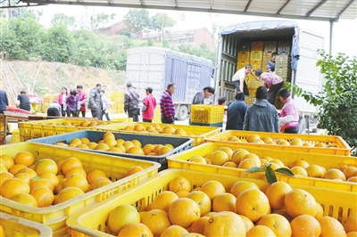 天堂镇内东村粤天果蔬合作社的“皇帝柑”丰收了,“南果北运”鼓了果农的腰包。