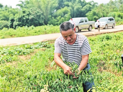 此外,驻村扶贫工作组还根据各户贫困户的实际,实施精准帮扶,扶持贫困户养鸡、种植辣椒和水稻等产业(如图),并取得良好成效。据初步预测,到今年底,坪塘村40户贫困户年人均可支配收入达到8300元,全部达到预脱贫的目标任务。