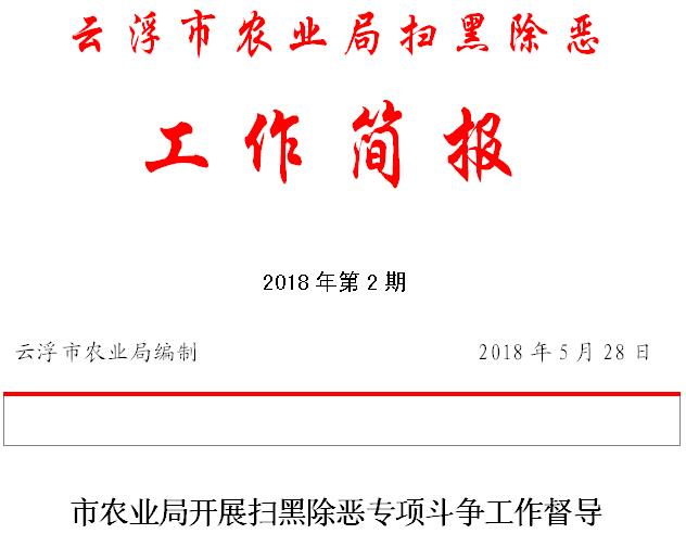 按照市委、市政府关于在全市开展扫黑除恶专项斗争的工作部署,为进一步掌握全市农业系统扫黑除恶专项斗争工作情况,市农业局印发《关于开展扫黑除恶专项斗争工作督导的通知》(云农电〔2018〕13号),对各县(市、区)农业领域开展扫黑除恶专项斗争工作情况进行督导。本次督导由局分管领导初云宝副局长带队,从4月23日开始,为期一个月。