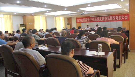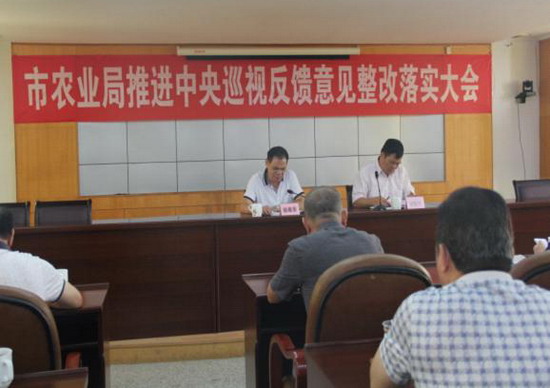 8月20日上午,市农业局在局五楼会议室召开会议,传达整改落实中央巡视反馈意见,并根据中央巡视反馈意见,联系市农业局实际,对下一阶段整改落实工作做了全面部署。市农业局党组书记、局长陈雄荣出席会议并作讲话。市农业局党组副书记、副局长梁胜华主持会议。