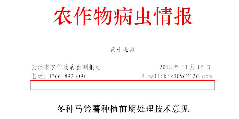 当前我市已进入冬种马铃薯前期工作,根据历年观察,冬种马铃薯发生病虫害主要有早疫病、晚疫病、病毒病、茎腐病、蚜虫等,为确保马铃薯生产安全,提出如下马铃薯种植前期处理技术意见: