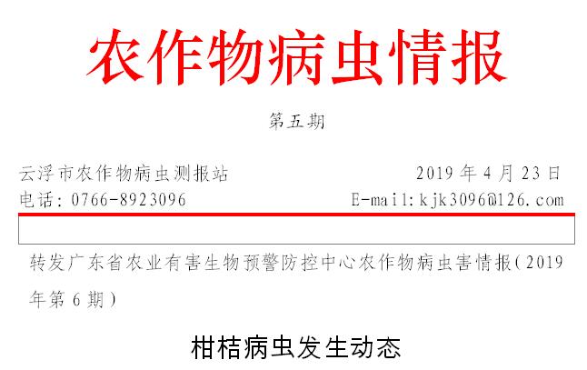 今年我省入汛期早,目前正值汛期,强对流天气多发,时雨时晴天气利于炭疽病、脂点黄斑病等病虫发生。我省种植的柑桔品种多、夏梢抽期不一致,利于红蜘蛛、潜叶蛾等病虫发生。预测下一阶段柑桔病虫将偏重发生,其中红蜘蛛偏重发生,潜叶蛾中等发生,柑桔炭疽病在贡柑、年桔等品种上偏重发生,脂点黄斑病在江门、肇庆等地区部分品种上偏重发生。