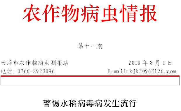 受台风环流天气影响,7月下旬,粤西部分稻区出现白背飞虱迁入峰。7月中旬,华南农业大学植物病毒研究室在罗定市调查,平均百丛稻桩有电光叶蝉960头,经检测橙叶病带毒率22%、条纹花叶带毒率10%、瘤矮病带毒率3.3%,超过30%的叶蝉携带一种或两种病毒。据省气候中心预测:8月,我省大部地区降水较常年同期偏多1-2成,主要有3次降水过程。月内有2个热带气旋登陆或严重影响我省。结合当前气候、虫源基数、带毒情况和水稻生育期分析,晚稻水稻病毒病潜在较高流行风险。预计:南方水稻黑条矮缩病在局部地区点片偏重发生,橙叶病在云浮、茂名、湛江等地局部偏重发生,瘤矮病在茂名、河源、惠州等地局部点片中等发生。
