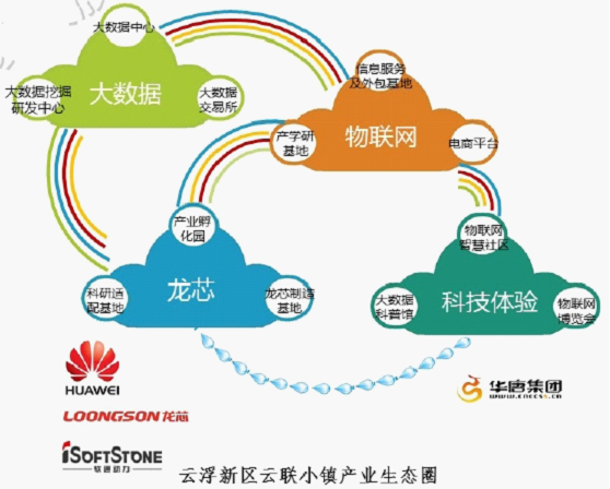 云浮新区云联小镇位于云浮新区核心地带,规划区总面积3.27平方公里。小镇内已建设产业创业孵化基地,有30多家孵化企业入驻,随着华为公司、龙芯中科、清软海芯等知名企业的落地,带动一批云计算相关企业和人才集聚,引进上中下游产业链的合作建设,围绕产业生态圈的云技术孵化、云基础服务、信息服务外包、智慧教育体验四个环节打造四大特色产业功能区,将小镇建设成为沟通珠三角、辐射大西南的云计算大数据产业集聚地。