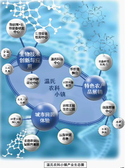 温氏农科小镇位于新兴县城东部,规划区面积为2.85平方公里。小镇内已建温氏集团总部、温氏研究院、温氏大华农生物科技公司等农业创新研发机构。小镇拟依托温氏集团的研发基础,通过搭建从良种繁育、饲料、禽药和生物工程、养殖设备、废物循环再利用的禽畜养殖产业链全环节的科研基地,集聚一批农牧科技企业,加强禽畜养殖产业的科技创新研发能力。借助孵化中心的平台,实现农牧科技成果转化和农牧科技企业的孵化成长,打造农业科技研发高地。