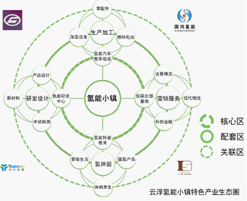 云城氢能小镇位于广东省云浮市云浮新区东南部,规划总面积7.72平方公里。小镇以氢能源产业为主导,引进了国鸿氢能公司和佛山飞驰汽车等企业,建成氢能产业与新材料发展研究院、氢燃料电池生产基地、氢能源汽车整车生产基地,初步形成研发、孵化、生产的产业链雏形。小镇将积极构建氢能源研发设计、生产加工、营销服务和氢体验等四大特色功能组团,致力打造中国氢谷·国际氢能创新中心、氢能源汽车生产基地、国家级氢能源创新服务示范基地、华南地区氢能源装备生产制造基地、珠江西岸氢能产品营销展示中心、未来科技文化体验的零碳小镇。
