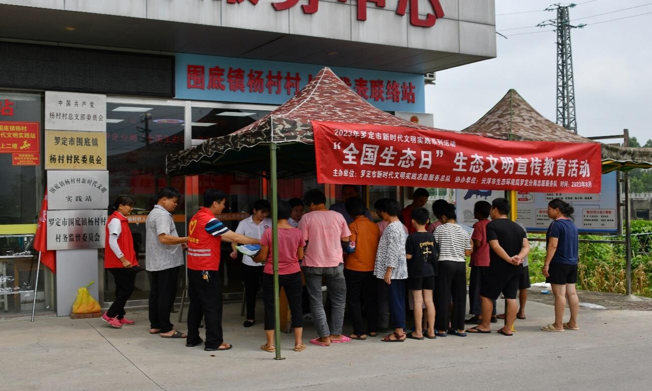 为深化习近平生态文明思想的大众化传播,做好首届全国生态日的宣传活动。2023年8月15日,云浮市生态环境局罗定分局在罗定市围底镇杨村村委举行了以“绿水青山就是金山银山“为主题的全国生态日宣传活动。