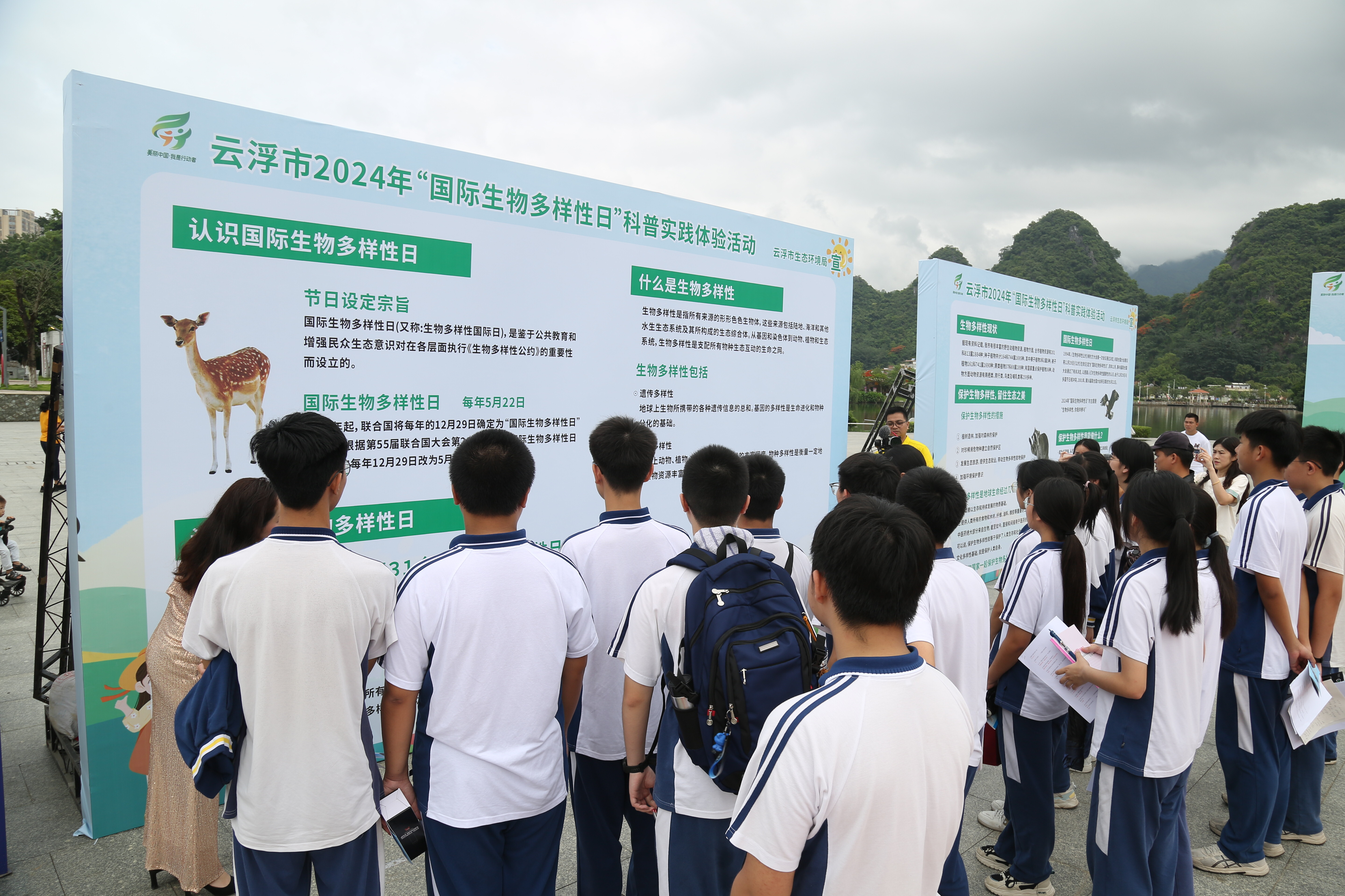 为全面贯彻落实习近平生态文明思想,普及保护生物多样性的重要意义和相关领域知识,切实提升社会各界的认知程度和保护意识,推动形成全社会共同推进生物多样性保护和可持续利用的良好氛围。2024年5月22日,云浮市生态环境局会同有关单位在云城区蟠龙天湖广场开展“国际生物多样性日”的科普实践体验活动。主办单位、协办单位和市民群众共100多人参加了活动。