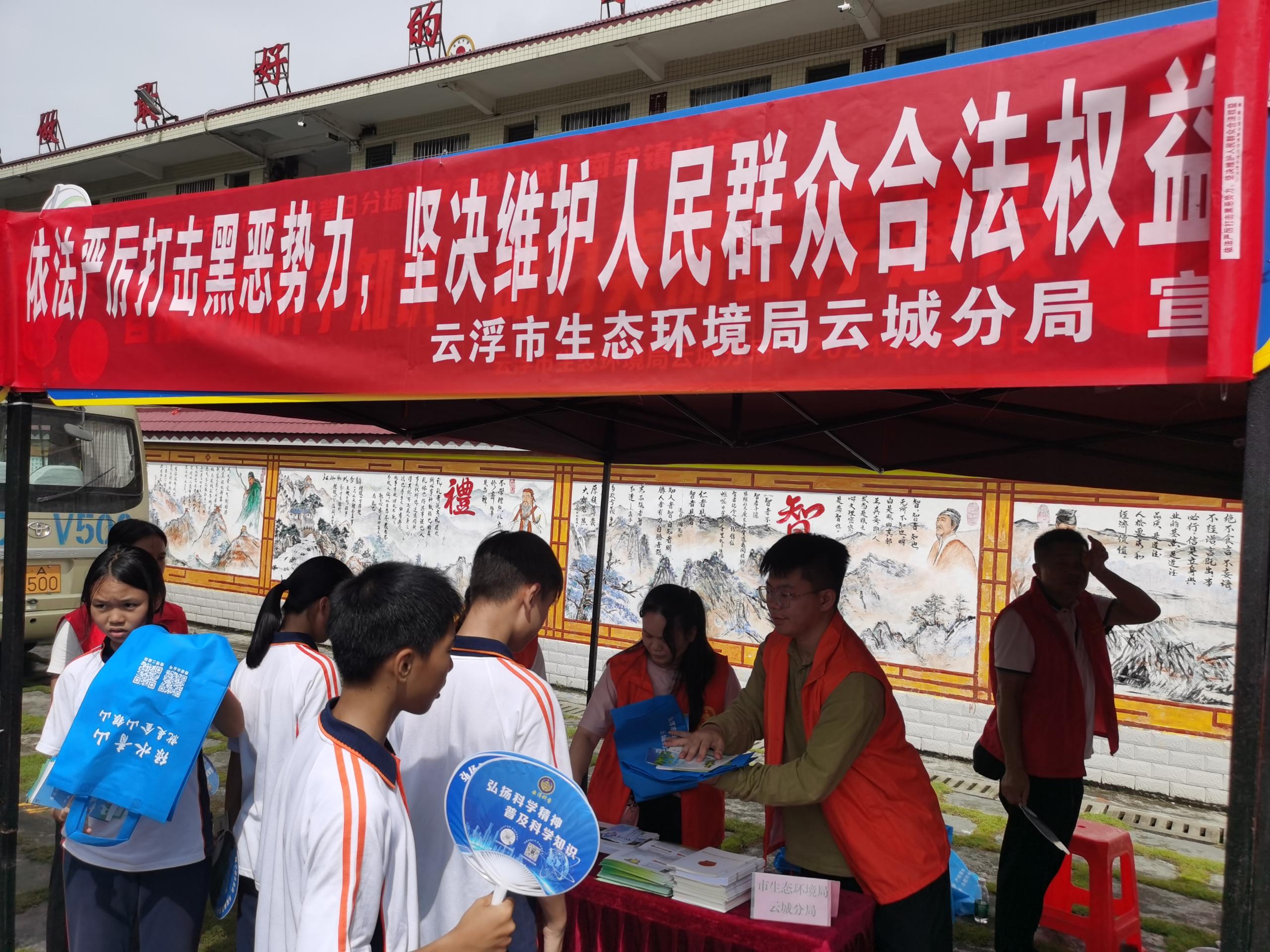 云浮市生态环境局云城分局组织志愿者到南盛中学开展常态化扫黑除恶宣传活动