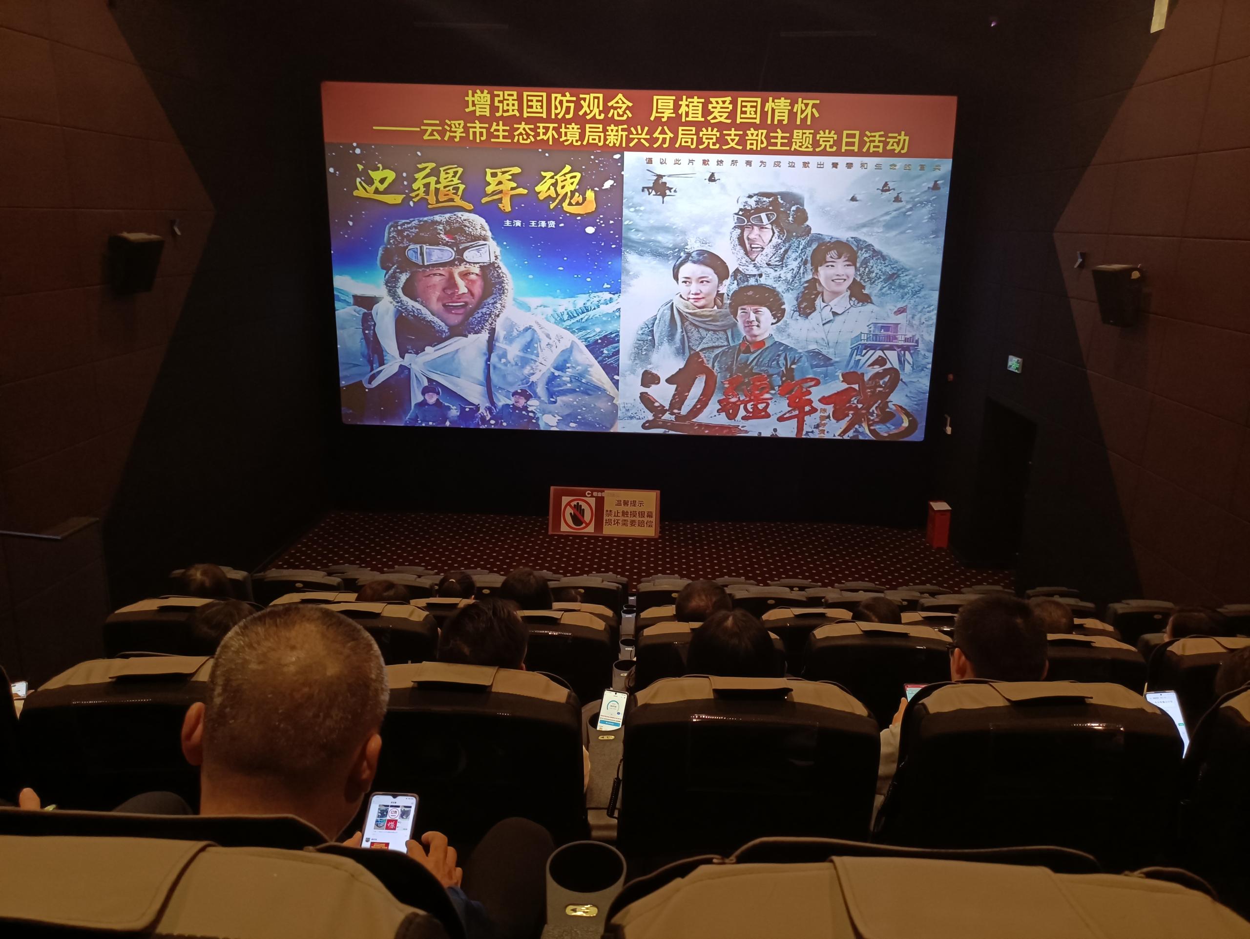 为进一步弘扬爱国主义精神,提升局内干部职工的国防意识,11月12日,云浮市生态环境局新兴分局开展“增强国防观念 厚植爱国情怀”主题党日活动,组织党员干部到电影院集中观看电影《边疆军魂》,局党员干部20多人参加活动。