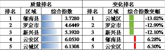2019年1-8月云浮市各县(市、区)水环境质量排名情况公布