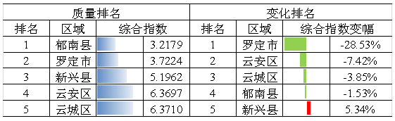 2020年1~2月云浮市各县(市、区) 水环境质量排名情况公布