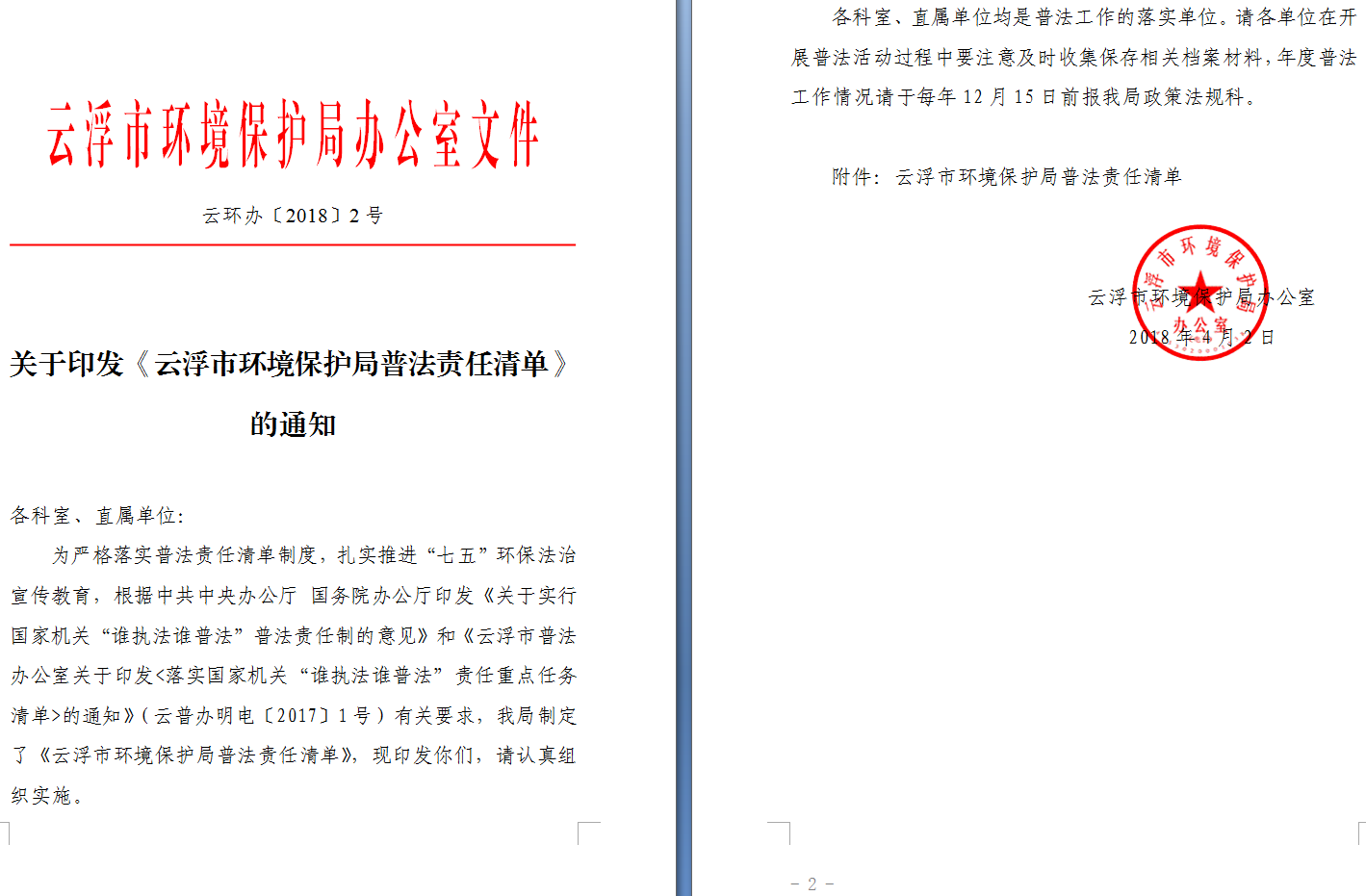 关于印发《云浮市环境保护局普法责任清单》的通知