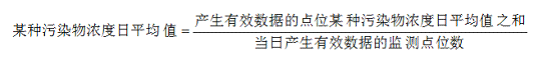 二氧化硫(SO2)、二氧化氮(NO2)、可吸入颗粒物(PM10)、细颗粒物(PM2.5)、一氧化碳(CO)浓度日平均值计算公式: