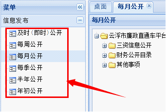 打开【信息发布】菜单,选定【发布周期】,选定【信息栏目】,勾选需要发布的信息的左侧的