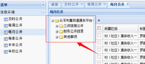 选定发布周期后,在右边会自动适配信息栏目,选定信息栏目后再即进行信息采编。如下图: