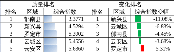 2024年1-8月云浮市各县(市、区)水环境质量排名情况公布