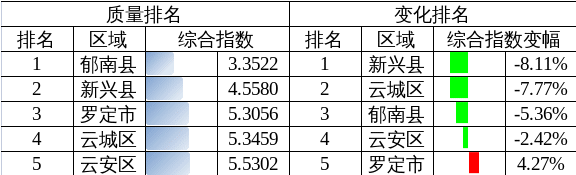 2024年1-9月云浮市各县(市、区)水环境质量排名情况公布