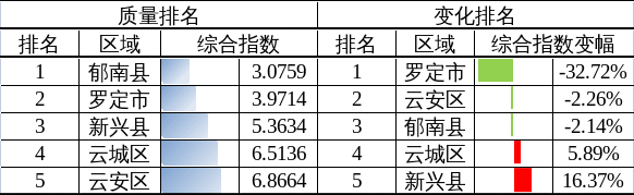 2025年1月云浮市各县(市、区)水环境质量排名情况公布