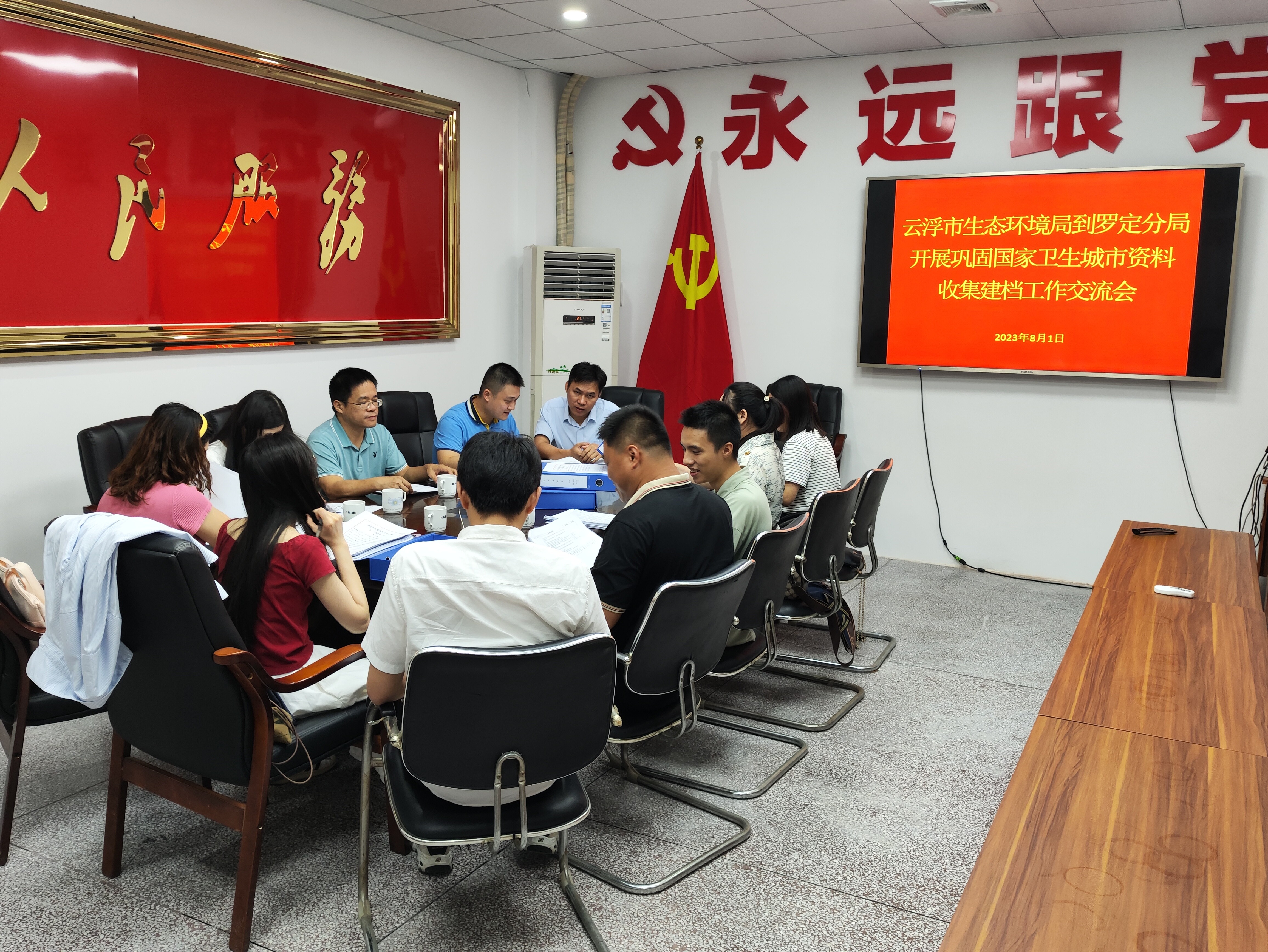 为及时总结全局巩固国家卫生城市工作成效,借鉴其他单位优秀经验以做好资料收集建档工作,2023年8月1日,市生态环境局办公室主任陈宇文同志带队到市生态环境局罗定分局开展巩固国家卫生城市资料收集建档经验工作交流。市局相关科室负责同志、市生态环境局罗定分局有关负责同志参加了此次交流会。
