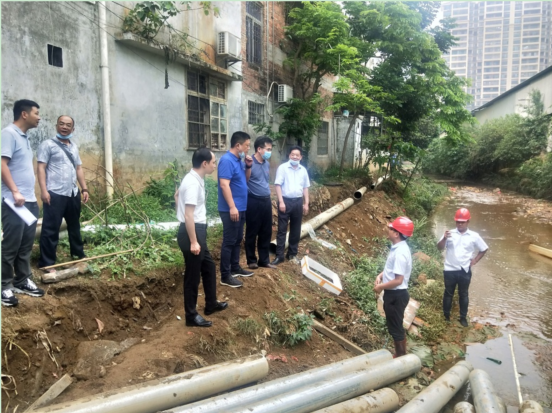 为持续推进南山河水质达标攻坚工作,2020年5月29日上午,市生态环境局党组书记、局长梁镇伟局长率队联合云城区政府、市住房和城乡建设局相关部门负责人到高峰河牧羊片区等现场督导检查截污工程。