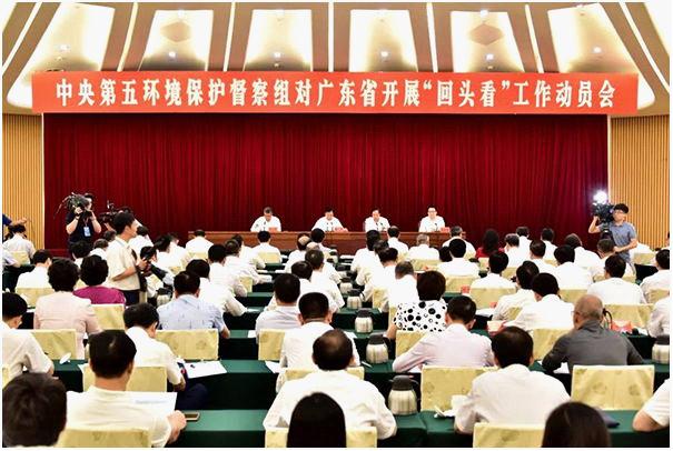 为深入贯彻落实习近平生态文明思想,经党中央、国务院批准,中央第五环境保护督察组近日进驻广东省开展环境保护督察“回头看”。6月5日,中央第五环境保护督察组对 广东省开展“回头看”工作动员会在广州召开,督察组组长张宝顺、生态环境部副部长赵英民就做好督察“回头看”工作分别作了讲话,广东省委书记李希作了动员讲话,会议由广东省政府省长马兴瑞主持。