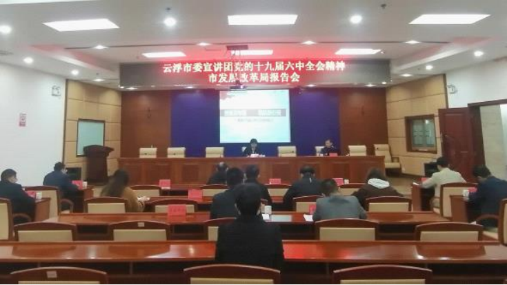 为深入学习党的十九届六中全会精神的丰富内涵和核心要义,切实把思想和行动统一到全会精神上来,进一步推动习近平新时代中国特色社会主义思想往深里走、往实里走、往心里走。12月10日,市发展改革局组织开展学习党的十九届六中全会精神专题宣讲活动,邀请了市委宣讲团成员、中共云浮市委党校二级调研员谭清秀同志作宣讲报告。市发展改革局全体干部职工参加了报告会,市委党史学习教育第七指导组有关人员到会指导。