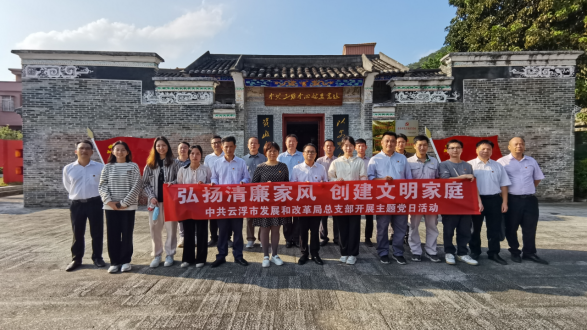 为深入贯彻落实习近平新时代中国特色社会主义思想,推动党的二十大精神在云浮落地生根,引导广大党员干部增强党性观念,11月10日,我局党总支部前往郁南开展“弘扬清廉家风、创建文明家庭”主题党日活动,感悟先贤遗风,传承廉洁基因,赓续红色血脉,切实从思想上筑牢全体党员干部不敢腐、不能腐、不想腐的“高压线”,营造风清气正的政治生态。
