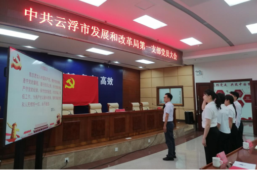为庆祝中国共产党成立102周年,深入学习习近平新时代中国特色社会主义思想和党的二十大精神,2023年6月30日上午,市发展改革局第一党支部召开党员大会,集中学习《习近平新时代中国特色社会主义思想专题摘编》和省委十三届三次全会精神,为党员6月和7月入党的同志颁发政治生日贺卡,新入党党员举行宣誓仪式,观看《自筑囚笼》廉政警示教育片等。