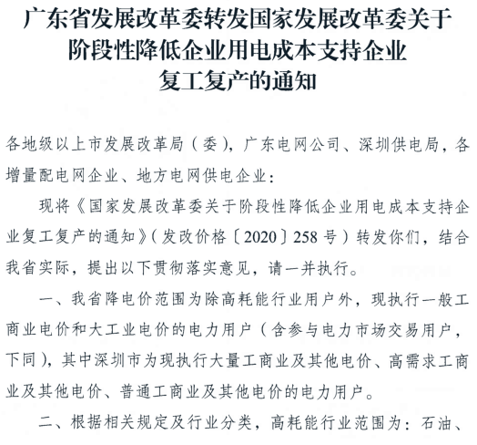 附件:《广东省发展改革委转发国家发展改革委关于阶段性降低企业用电成本支持企业复工复产的通知》(粤发改价格 [2020]74号)