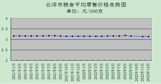 12月份,我市粮食市场供应充足,价格稳定,总体保持平稳运行。监测的6种粮食市场零售均价每500克为3.14元,与上月环比持平,与去年同期比升0.31%。