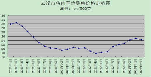 12月份猪肉供应充足,价格微幅下跌,所监测的四种猪肉品种每500克平均零售均价24.38元。其中,排骨、瘦肉、上肉、肋条肉零售价与上月环比分别降2.05%、2.27%、2.87%、1.66%。