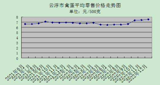 12月份,我市禽蛋市场供应充足,价格微幅上升,总体保持稳中有升。4种禽蛋市场零售均价每500克为7.54元,与上月环比升1.67%,与去年同期比升8.69%。