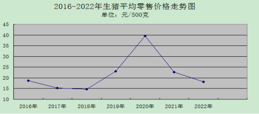 2022年,生猪产能向好,供求宽松,价格回落,生猪(三元)平均出场价每公斤为18.08元,环比降19.61%,降幅近2成。
