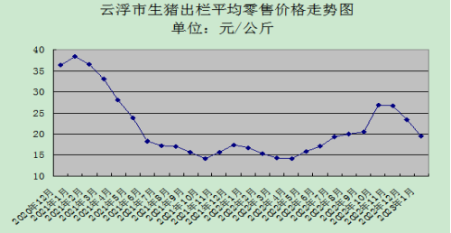 1月份,我市生猪市场供应充足,价格微幅下降,总体保持稳中有降。生猪(三元)平均出场价每公斤为19.45元,跌幅扩大,与上月环比降12.46%,与去年同期比升18.57%。