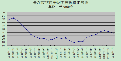 1月份猪肉供应充足,价格微幅下跌,所监测的四种猪肉品种每500克平均零售均价23.48元。其中,排骨、瘦肉、上肉、肋条肉零售价与上月环比分别降2.24%、2.94%、3.89%、3.75%。