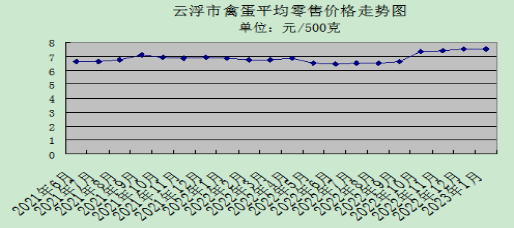 1月份,我市禽蛋市场供应充足,价格总体平稳。4种禽蛋市场零售均价每500克为7.50元,与上月环比升0.53%,与去年同期比升9.17%。