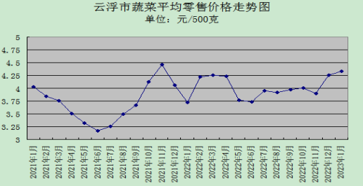 1月份,我市蔬菜供应充足,价格上升,所监测的30种蔬菜品种,零售均价每500克为4.33元,与上月环比升0.93%,与去年同期比升16.408%。