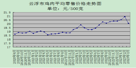 3月份,云浮市鸡肉市场供应充足,价格总体保持稳中有跌。鸡肉市场零售均价每500克为20.06元,与上月环比降3.27%,与去年同期比升3.03%。