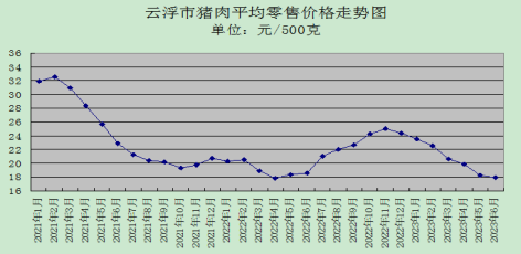 6月份,我市猪肉市场供应充裕,价格稳中有降。所监测的4种猪肉零售均价每500克为17.95元,环比下降1.68%,同比下降3.58%。其中,排骨、精瘦肉、有皮上肉、肋条肉零售均价每500克分别为28.97元、17.99元、12.22元、12.63元,环比分别下降0.55%、2.70%、3.48%、1.02%,同比分别下降3.43%、6.01%、0.65%、3.14%。