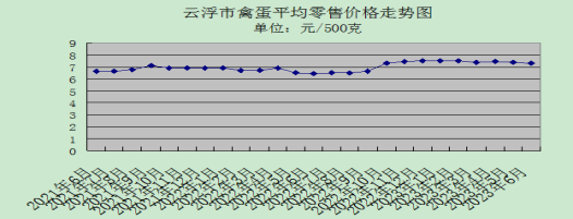 6月份,我市禽蛋市场供应充足,价格总体小幅下跌。监测的4种禽蛋市场零售均价每500克为7.32元,环比下降1.08%,同比上升4.57%,其中,白壳鸡蛋下降1.78%,鸭蛋下降0.89%。