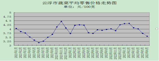 6月份,我市蔬菜供应充足,价格小幅下行。监测的30种主要蔬菜价格呈“7升23降”态势,零售均价每500克为3.56元,环比下降4.56%,同比下降4.81%;30个蔬菜品种,降幅达一成以上的有本地菜心、水空心菜、白苋菜、茄子、苦瓜、青豆角、丝瓜等。从分类来看,茄果类蔬菜,大部分呈降势;叶菜类价格除芥兰、西芹、大白菜、菠菜、椰菜、花菜分别上升0.68%、3.12%、2.17%28.41%、0.41%、4.38%外,其余品种均下降;瓜类价格除青皮冬瓜上升0.89%外,其余瓜类价格均下跌;根茎类蔬菜除莲藕上升12.35%外,其余价格以降为主。