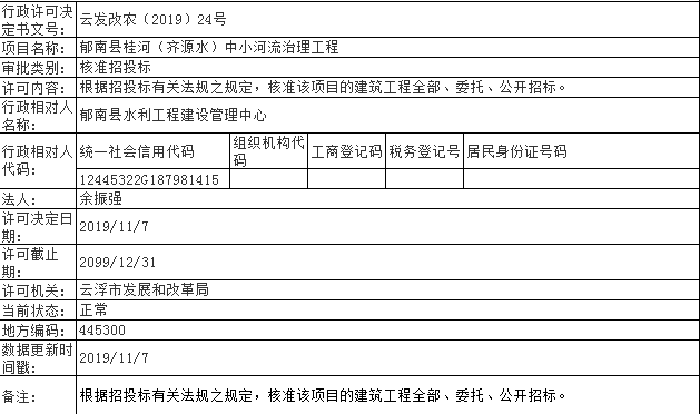 关于郁南县桂河(齐源水)中小河流治理工程的招投标核准