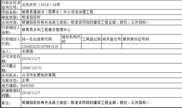 关于郁南县建城河(思栗水)中小河流治理工程的招投标核准