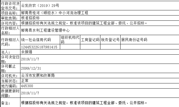 关于郁南县桂河(顺坦水)中小河流治理工程的招投标核准