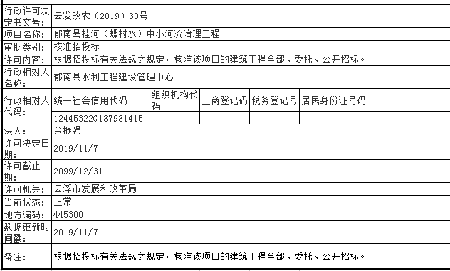 关于郁南县桂河(螺村水)中小河流治理工程的招投标核准