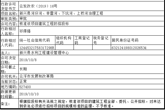 关于新兴县河仔河、非雷河、下坑河、上桥河治理工程的招投标核准