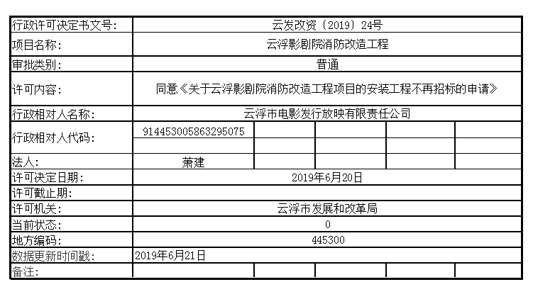 同意《关于云浮影剧院消防改造工程项目的安装工程不再招标的申请》